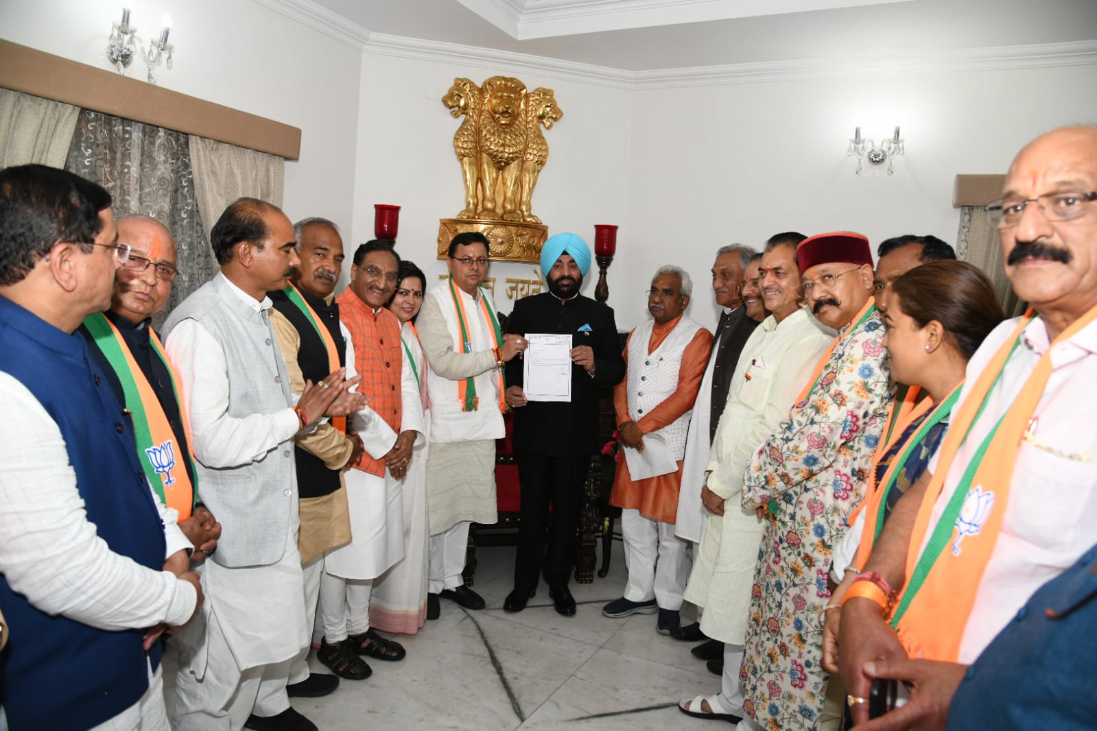 भाजपा प्रदेश अध्यक्ष के अनुरोध पत्र को स्वीकारते हुए राज्यपाल लेफ्टिनेंट जनरल गुरमीत सिंह (से नि) ने मनोनीत मुख्यमंत्री श्री पुष्कर सिंह धामी को मुख्यमंत्री के रूप में पद एवं गोपनीयता की शपथ दिलाने का निर्णय लिया है |