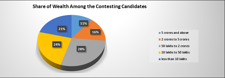 असल में चुनाव में खुद को जनता का सेवक कहने वाले सियासी दलों के प्रत्याशियों के पास जनता से ज्यादा धन है। वहीं सियासी दल भी करोड़पति प्रत्याशियों को टिकट देने में पीछे नहीं है। राज्य में 40 फीसदी से ज्यादा प्रत्याशियों के पास करोड़ों की संपत्ति है और इस मामले में कांग्रेस बीजेपी से आगे है।