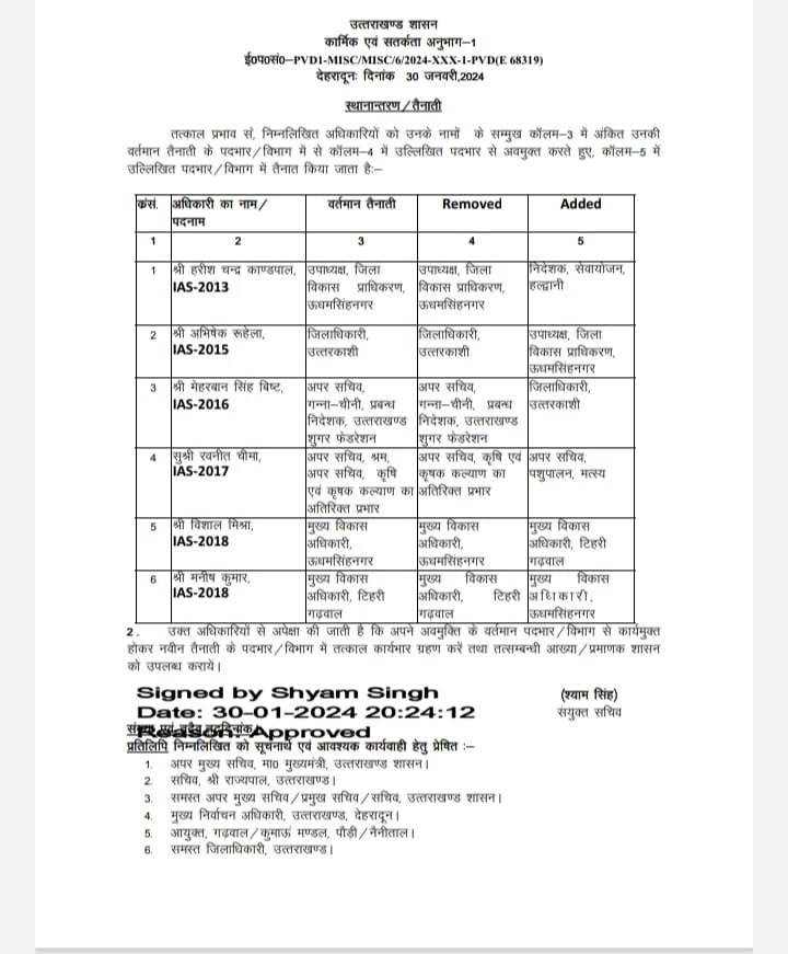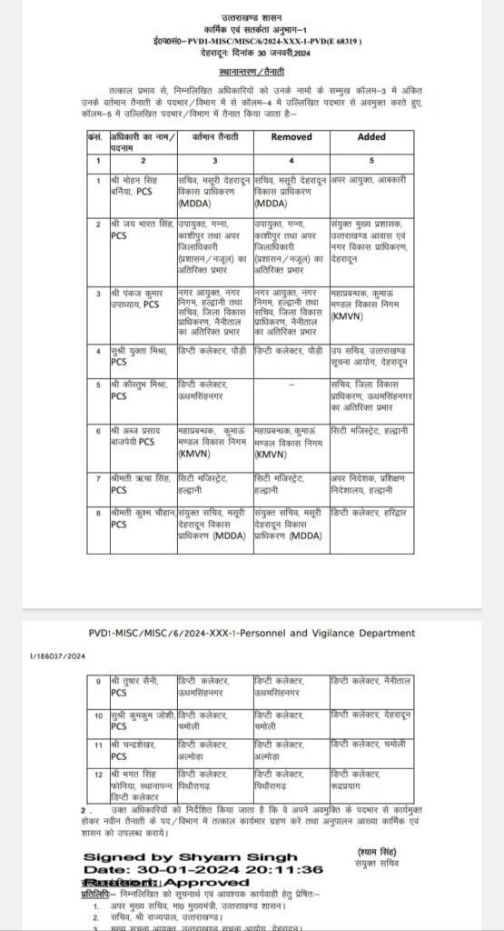 उत्तराखंड: IAS व PCS अधिकारियों के हुए तबादले By newsadmin Last updated Jan 31, 2024 देहरादून, न्यूज यूके लाइव डॉट इन। शासन ने देर सायं कई IAS व PCS अधिकारियों के तबादले कर दिए है। इस दौरान उत्तरकाशी जनपद के जिलाधिकारी को भी बदल दिया गया है। देखिए सूची Facebook Twitter LinkedIn WhatsApp
