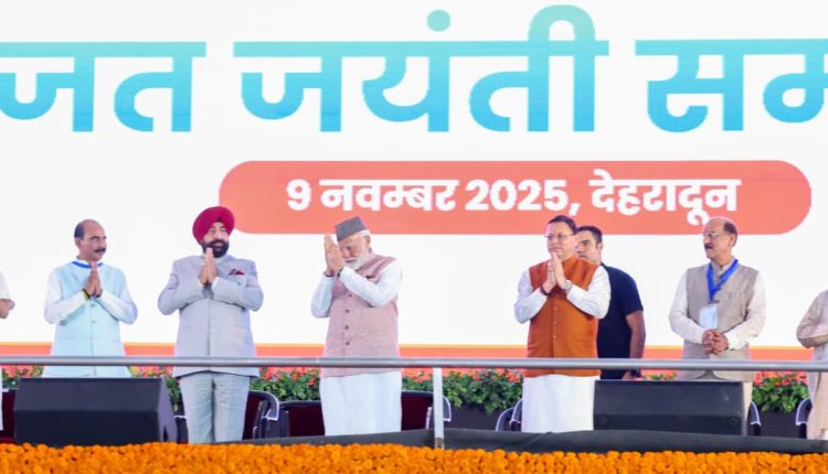देहरादून, न्यूज यूके लाइव डॉट इन। उत्तराखंड राज्य स्थापना दिवस, रजत जयंती पर्व के मुख्य समारोह में लिए रविवार को देहरादून पहुंचे प्रधानमंत्री नरेंद्र मोदी ने 8260 करोड़ रुपए की विकास परियोजनाओं का शिलान्यास – लोकार्पण किया। उन्होने उत्तराखंड की गत 25 वर्षों की उपलब्धियों की सराहना करते हुए, अगले 25 वर्षो के लिए रोडमैप के साथ आगे बढ़ने के लिए प्रेरित किया।