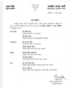 राष्ट्रीय महासचिव अरुण सिंह द्वारा 4 राज्यों के लिए पर्यवेक्षको की सूची जारी कर दी गई है। देखिए सूची:-