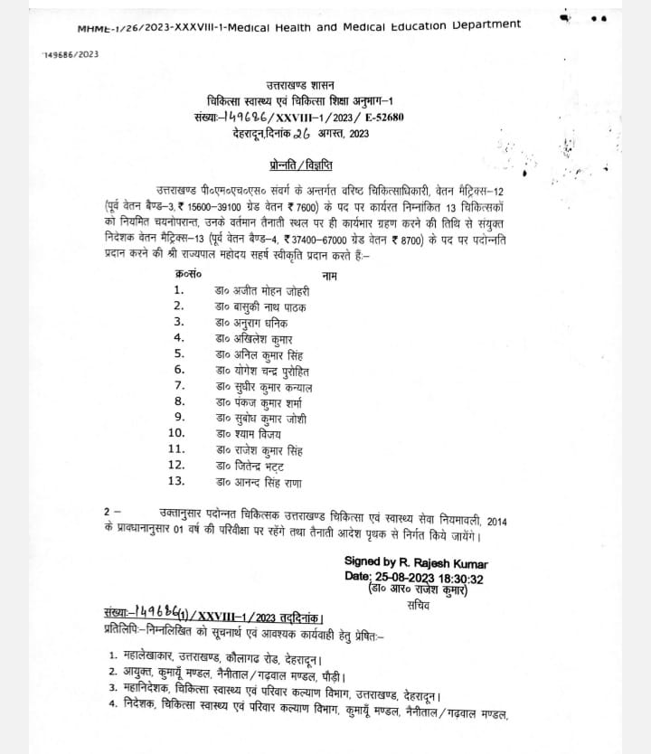 उत्तराखंड: स्वास्थ्य विभाग में इन डॉक्टरों का किया गया प्रमोशन By newsadmin Last updated Aug 27, 2023 देहरादून 27 अगस्त, गढ़वाल का विकास डॉट कॉम। उत्तराखंड स्वास्थ्य विभाग में डॉक्टरों का प्रमोशन किया गया है। देखें सूची Facebook Twitter LinkedIn WhatsApp