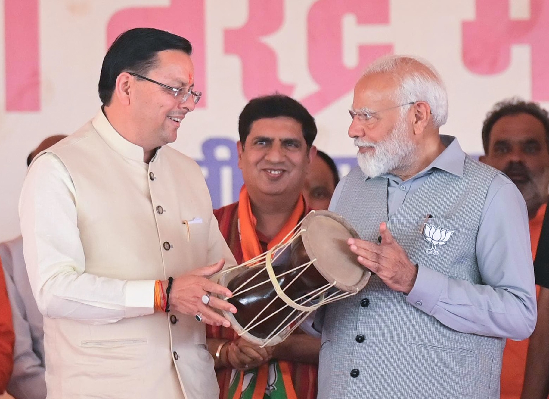 देहरादून, न्यूज यूके लाइव डॉट इन। प्रधानमंत्री नरेंद्र मोदी ने गुरुवार को ऋषिकेश स्थित आई.डी.पी.एल मैदान में भाजपा उत्तराखंड द्वारा आयोजित विजय संकल्प रैली में प्रतिभाग किया। इस अवसर पर मुख्यमंत्री श्री पुष्कर सिंह धामी ने *पहाड़ी वाद्य यंत्र हुड़का उपहार स्वरूप प्रधानमंत्री को भेंट कर उनका स्वागत किया। इस दौरान प्रधानमंत्री ने स्वयं भी हुड़का बजाया।*