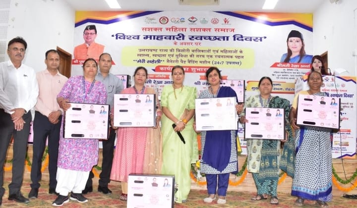 देहरादून 28 मई, गढ़वाल का विकास डॉट कॉम। प्रदेश की महिला सशक्तिकरण एवं बाल विकास मंत्री रेखा आर्या ने आज मुख्य सेवक सदन,देहरादून में ‘विश्व माहवारी स्वच्छता दिवस’ के अवसर पर उत्तराखण्ड राज्य की किशोरी बालिकाओं एवं महिलाओं के स्वास्थ्य, स्वच्छता एवं सुविधा की तरफ एक रचनात्मक पहल “मेरी सहेली” सैनेटरी नैपकिन पैड वैंडिंग मशीन कार्यक्रम में कैबिनेट मंत्री गणेश जोशी जी के साथ मुख्य अतिथि के तौर पर शिरकत की जहां कार्यक्रम का शुभारंभ दीप प्रज्ज्वलन कर किया गया। वहीं कार्यक्रम में उपस्थित महिला चिकित्सकों ने बालिकाओं को माहवारी में क्या करना चाहिए और क्या नही के बारे में जानकारी दी। साथ ही बालिकाओं व महिलाओं में माहवारी से संबंधित फैली भ्रांतियों के बारे में बताया। कार्यक्रम में उपस्थित कई बालिकाओं ने माहवारी से संबंधित अपने विभिन्न प्रश्न किये जिनके जवाब डॉक्टर्स द्वारा उन्हें दिए गए साथ ही माहवारी को लेकर उनके मन मे फैली भ्रांतियां को भी दूर किया।