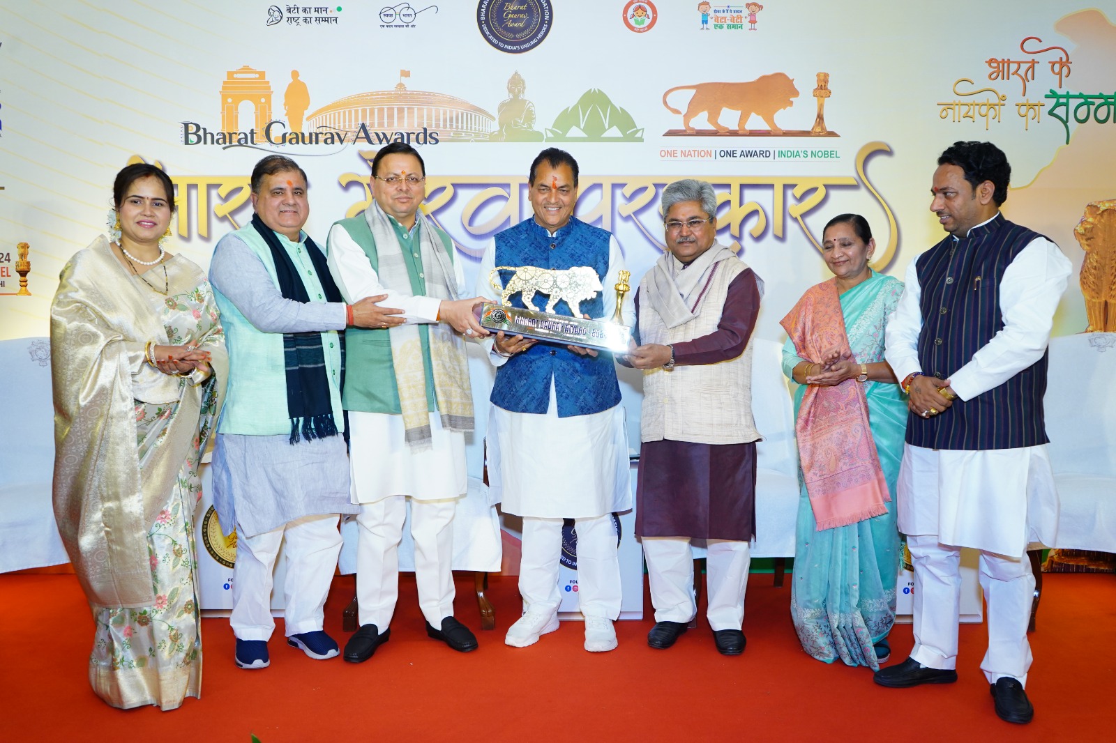 नई दिल्ली में आयोजित भारत गौरव पुरस्कार के आठवें अधिवेशन में मुख्यमंत्री श्री पुष्कर सिंह धामी जी, प्रदेश अध्यक्ष श्री महेन्द्र भट्ट जी, केंद्रीय राज्य मंत्री श्रीमती नीमूबेन बंभानिया जी, प्रदेश प्रभारी दुष्यंत गौतम जी, डॉ. संदेश यादव जी, और श्री आकाश पांडेय द्वारा सम्मान प्रदान किया गया।