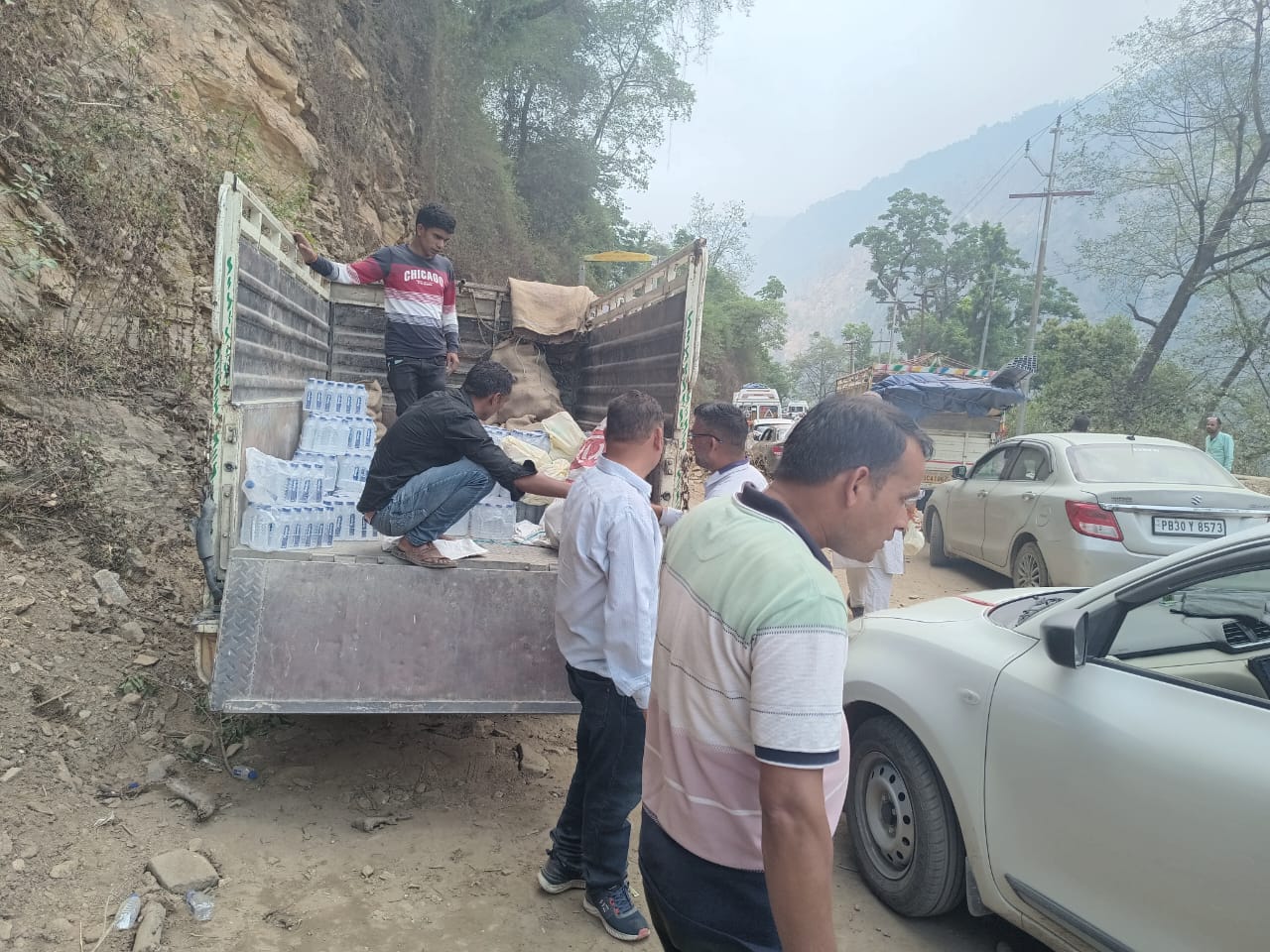 यात्रा मार्ग में जाम में फंसे यात्रियों को जिला प्रशासन ने वितरित किए फूड पैकेट एवं पानी की बोतलें