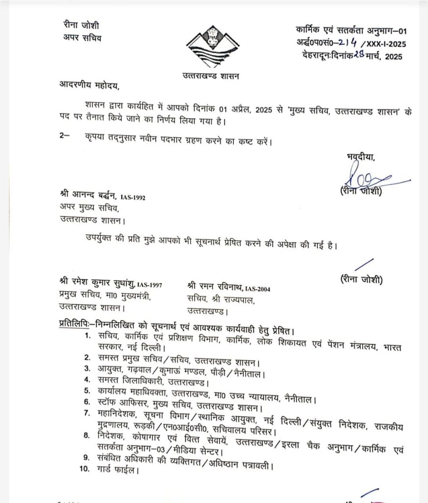 ये होंगे उत्तराखंड के नए मुख्य सचिव, आदेश जारी